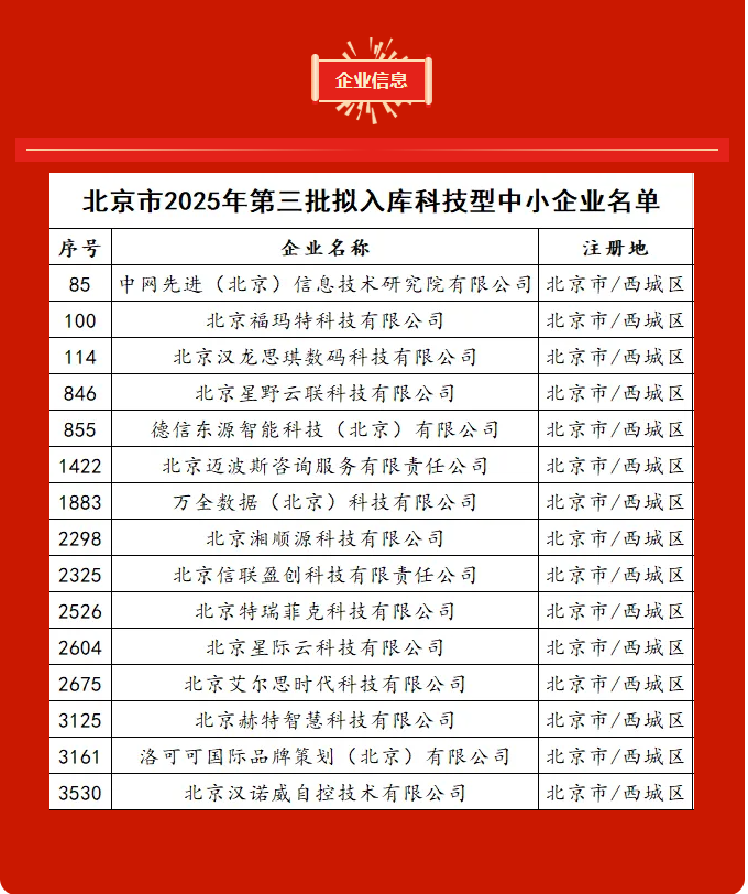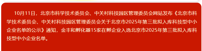 【企业动态】金丰和孵化器15家在孵企业入选北京市2025年第三批拟入库科技型中小企业名单
