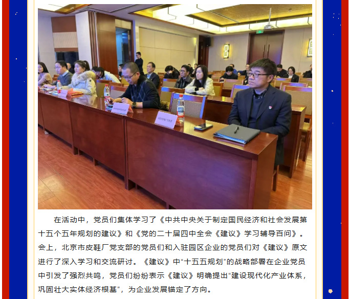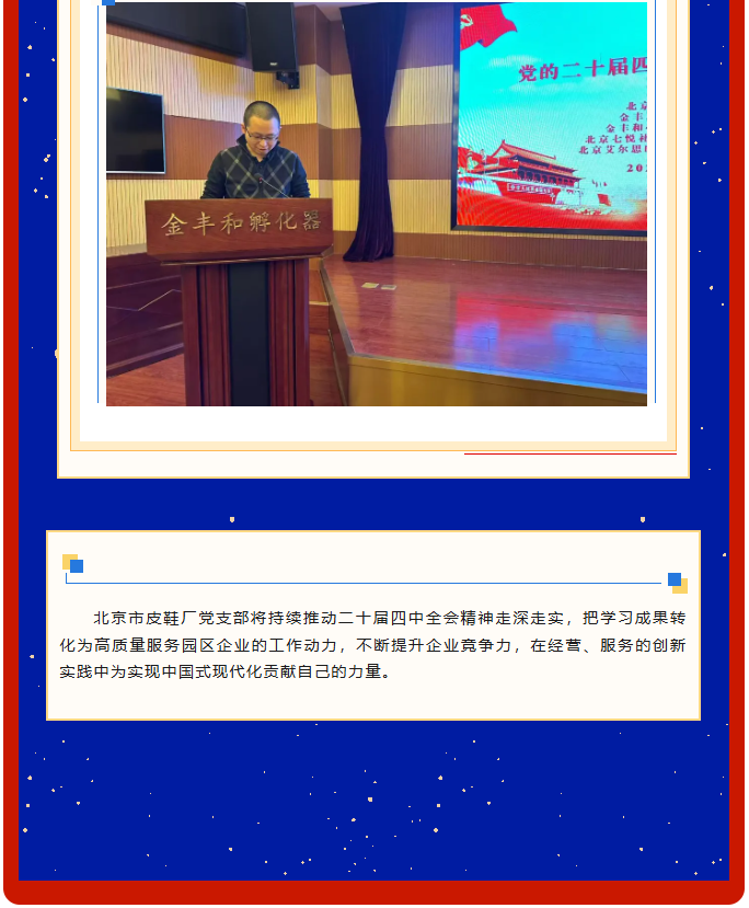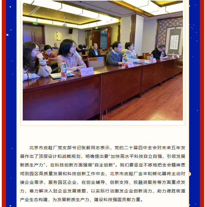 【党建引领】北京市皮鞋厂党支部与金丰和入驻企业党支部开展党建共建活动——“党的二十届四中全会精神专题学习”