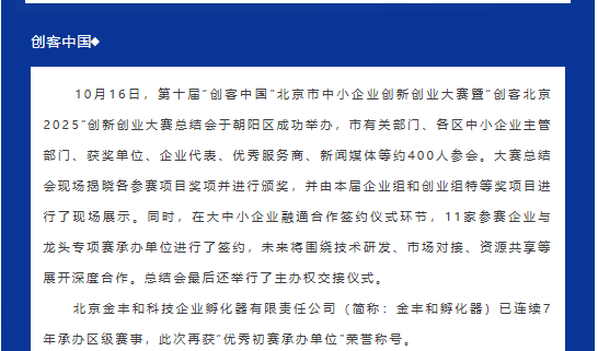 【新闻动态】金丰和孵化器再获“优秀初赛承办单位”称号