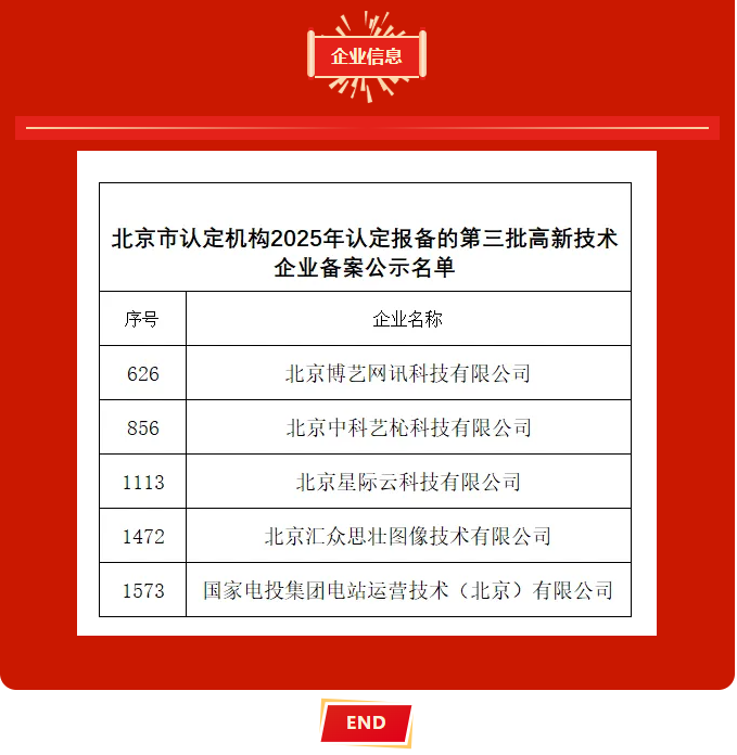 【企业动态】金丰和孵化器5家在孵企业入选北京市认定机构2025年认定报备的第三批高新技术企业备案公示名单