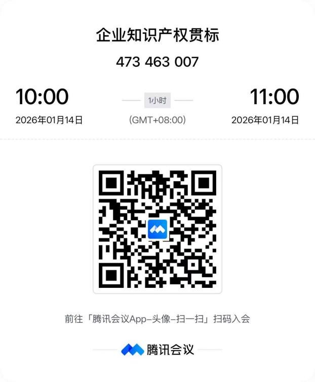 三、培训对象 园区内各企业的管理人员、知识产权管理人员、研发人员以及对知识产权管理感兴趣的相关人员。 四、培训时间及方式 2026年1月14日(周三)上午10:00——11:00 线上直播:通过腾讯会议平台进行线上直播,确保参会者能够灵活参与,实时互动。